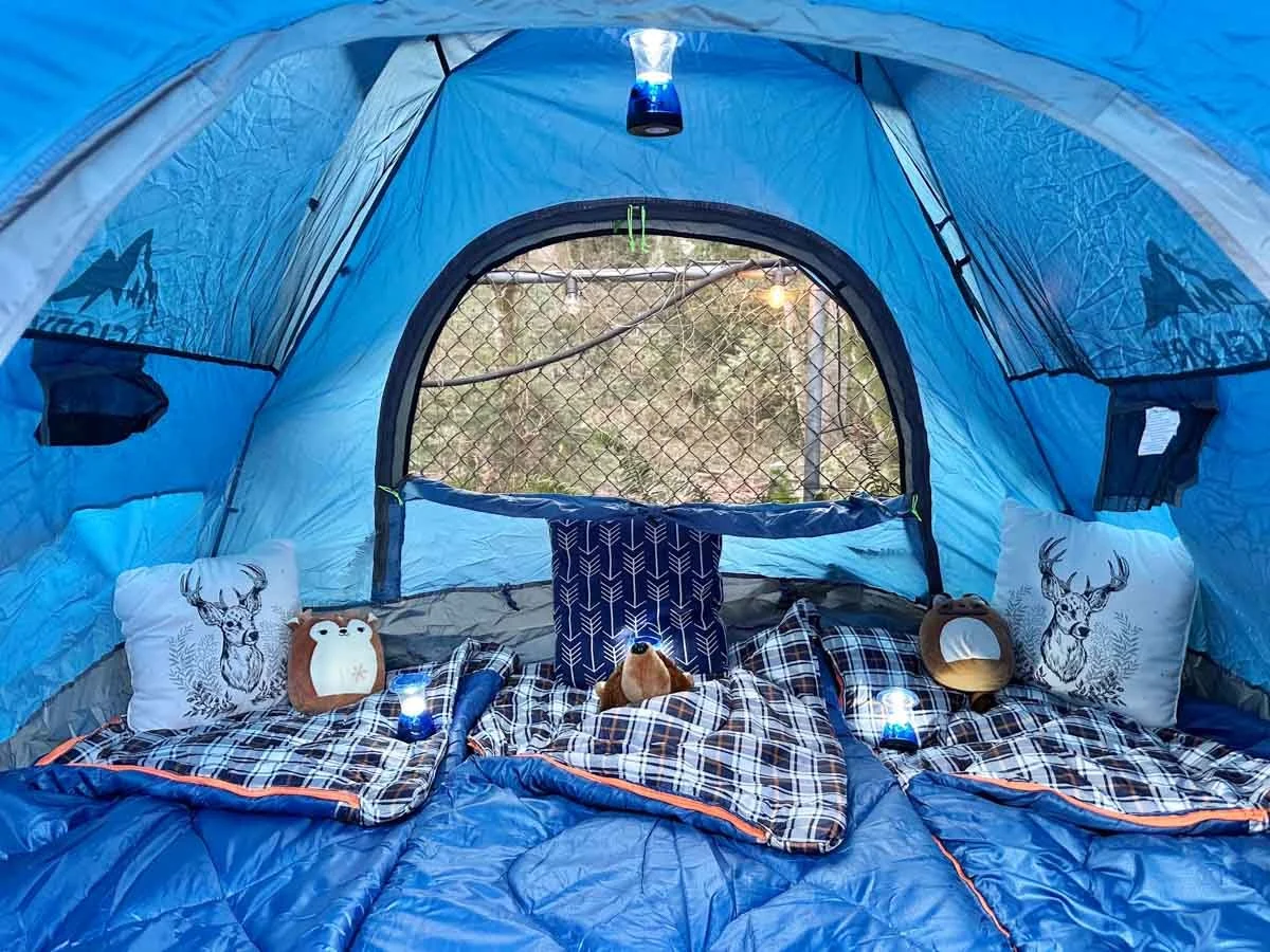 * Due to the larger tents and extensive accessories and decor, this theme has separate pricing from our other tent parties. Minimum rental starts with 1 large tent plus decor for $595. Each tent sleeps up to 3 adults or 4 children. 2 large tents plus decor is $795. 3 large tents plus decor is $995.